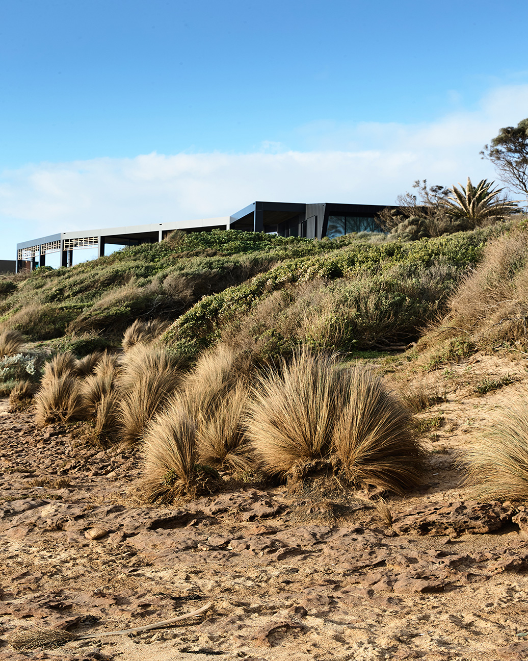 Canadian Bay Cabin is first and foremost defined by the site, and while the outcome is clearly a response to this context, it is by no means a typical coastal home. The rare proximity to the beach, enhanced by the planning scheme which allowed a zero setback to the foreshore, provides exceptional panoramic views of the water, however, the architecture gives equal priority to creating a sense of protection and shelter appropriate to a climate of extremes. The result is a home that, while outsized by traditional cabin standards, captures many of the essential elements of a cabin typology.