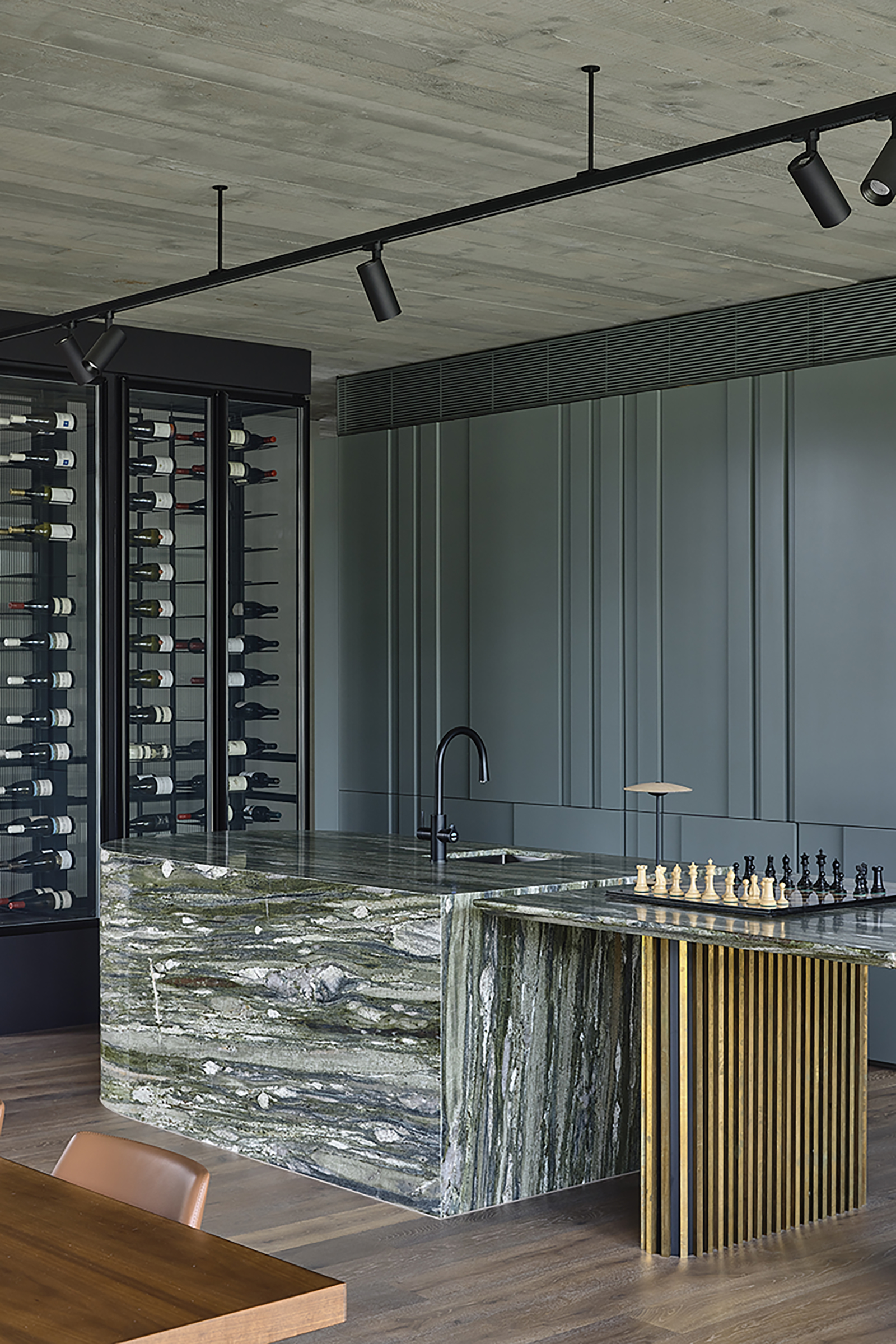 Garden + House is the culmination of our clients’ long-held vision for a home that reaches into the garden. It is also a place to entertain, house their art collection and accommodate them as they transition to an empty nest. The couple inhabits one level without it feeling cavernous or having to use the stairs, while the zoning of the floor plan around an east-facing courtyard gives them the connection to the outdoors they so desire. A bar is the centrepiece of the open living space, which has its own north-facing view of the garden, and this allows for big family get-togethers.