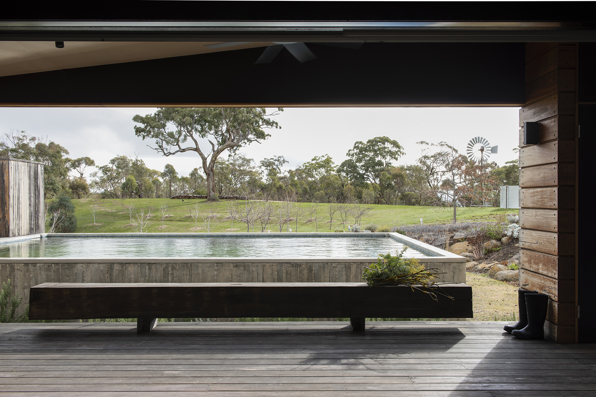 The ‘Hill Plains Cottage’ is a standalone building constructed near the ‘Hill Plains House’. The existing home is a compact, off grid family dwelling of around 180m2. The ‘Hill Plains Cottage’ creates a recreational precinct, including a swimming pool and pool house which provides a separate accommodation for visiting family and friends. The design response is driven by context, considering local vernaculars, site conditions, views, and its relationship to the existing dwelling as well as the broader landscape. The Hill Plains Cottage transitions from social hub to retreat, complementing the family’s lifestyle.