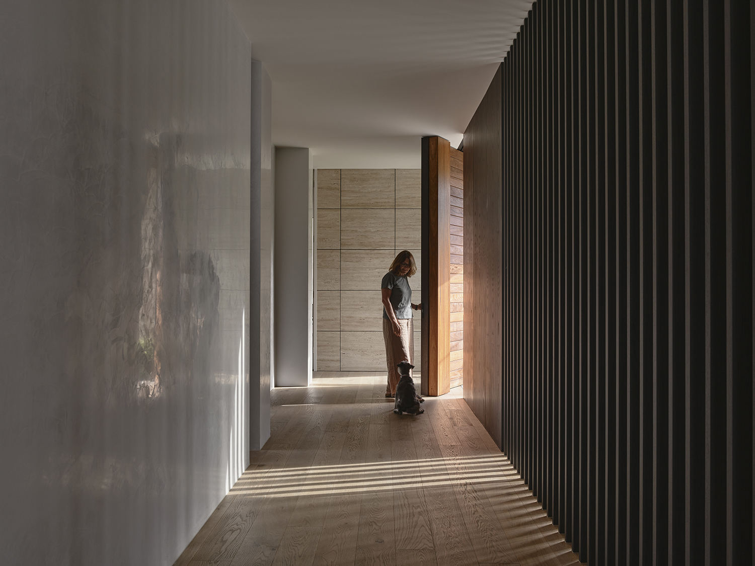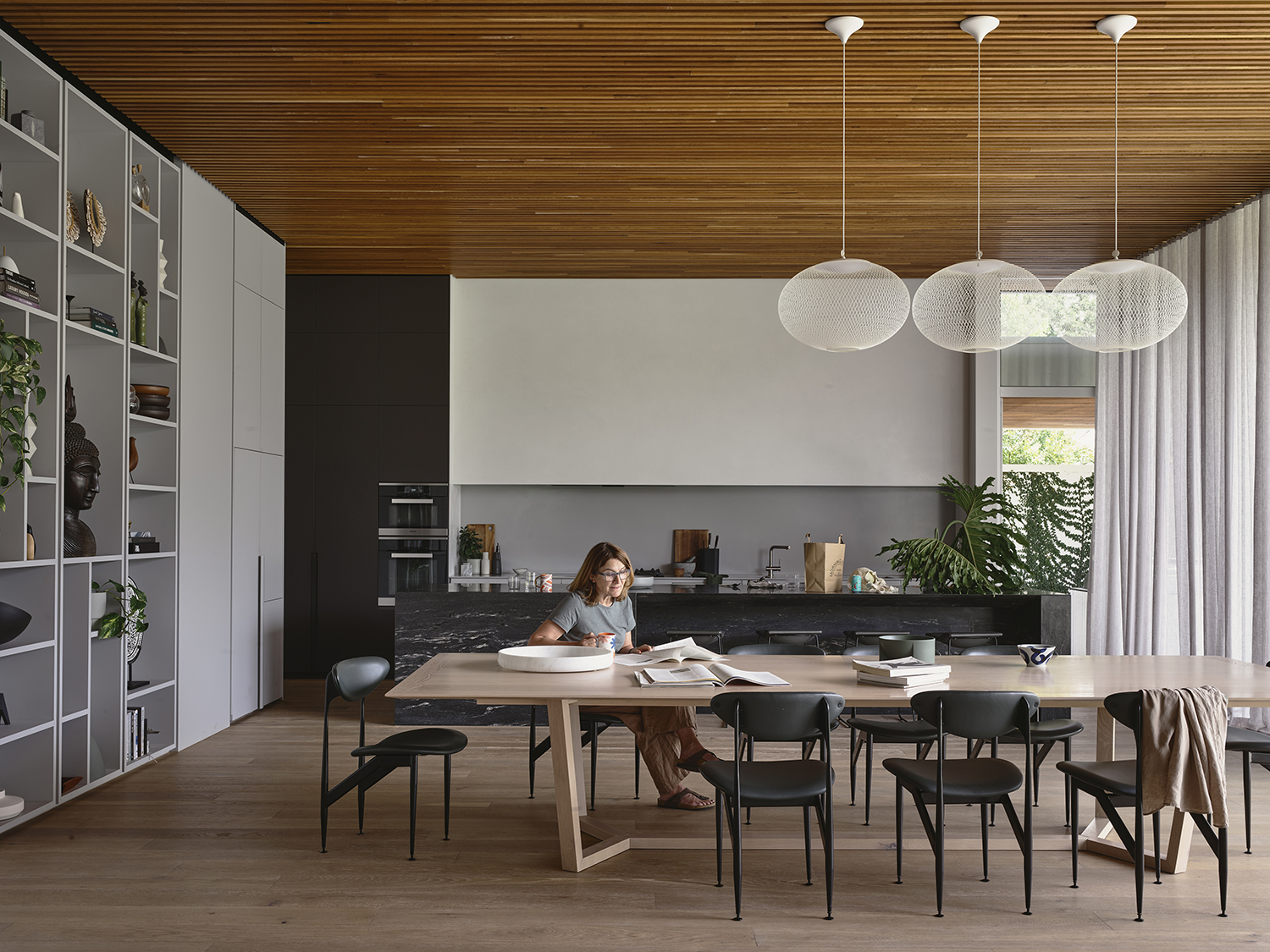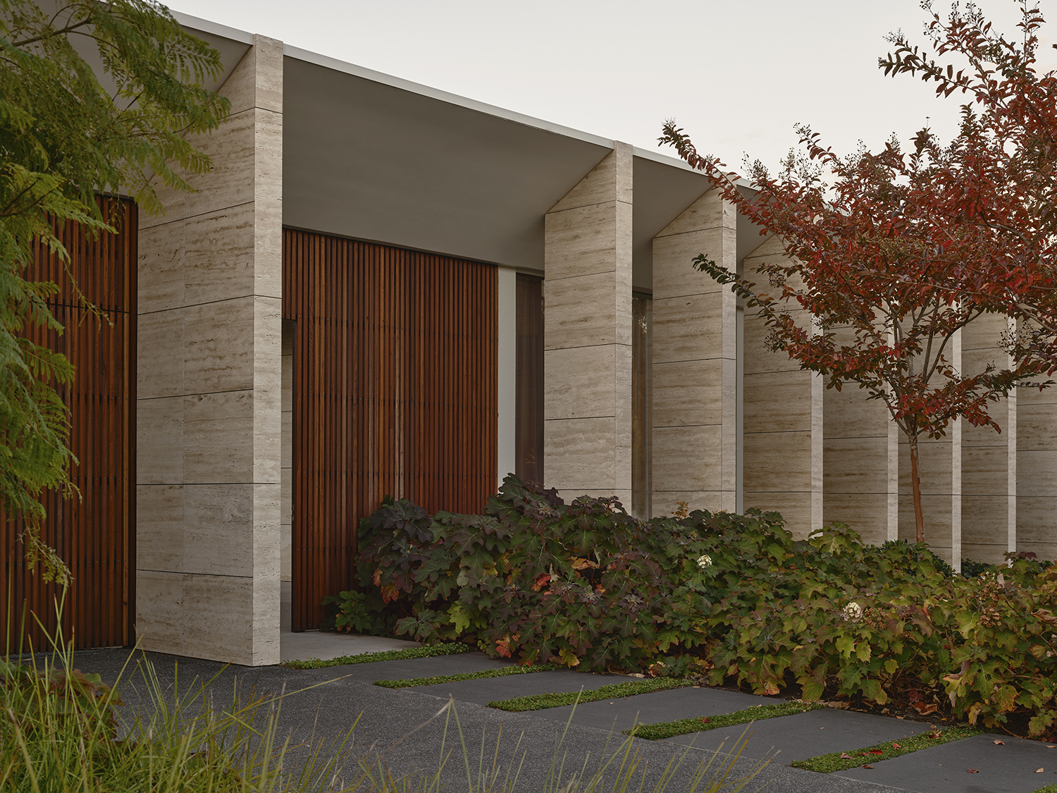 Linea House sits deeply embedded in its landscaped garden, with every part of the interior visually connected to nature. The clients wanted a home that would evolve as their adult family, and guests, come and go, and a floor plan defined by separate wings ensures that will happen. Central to the overall design is the idea of the house not turning its back to the street, while still preserving a sense of privacy and security for the clients and their family. Removing the traditional boundary fence extends the property outwards, generously greeting passers-by and blurring the line between public and private space.