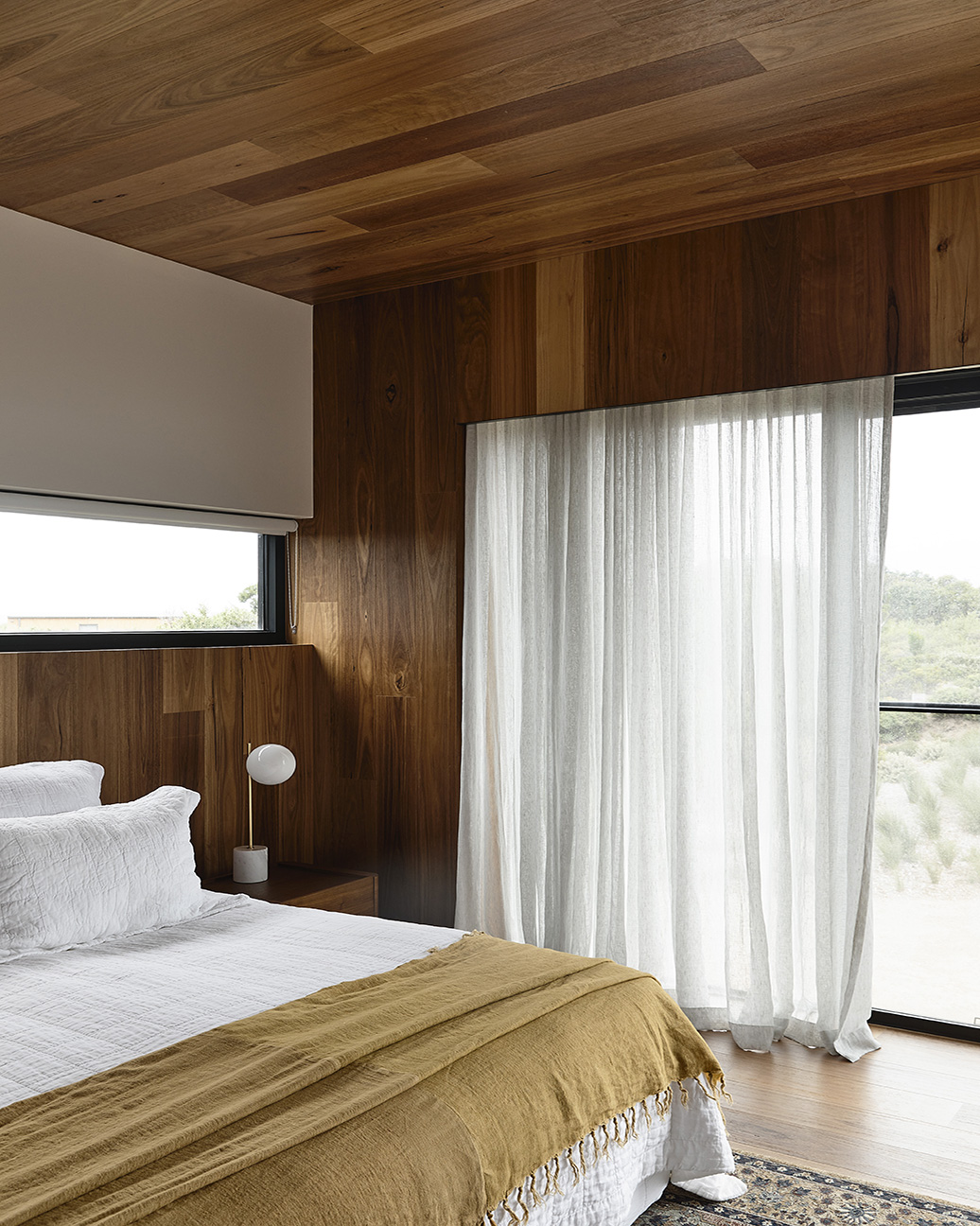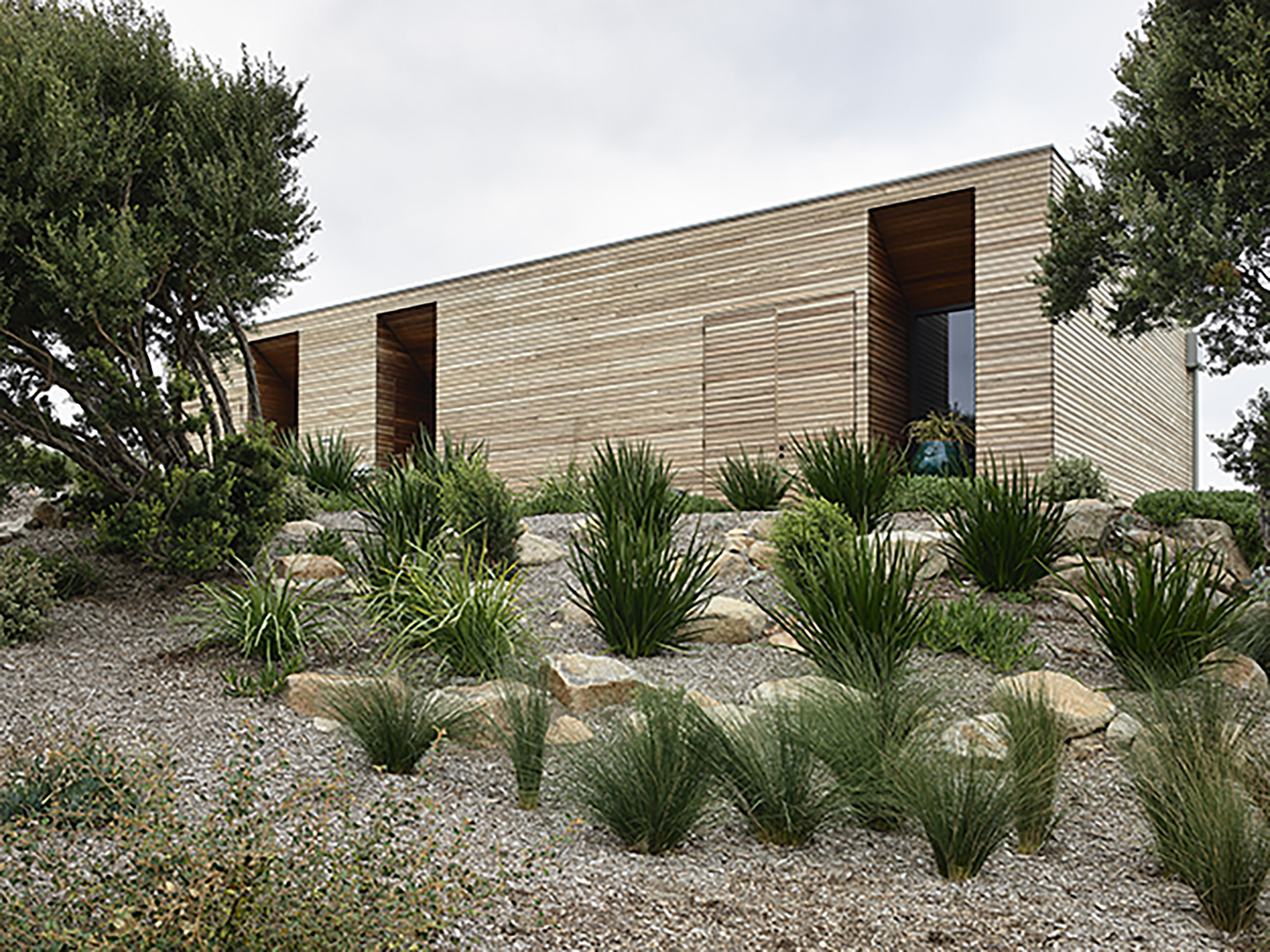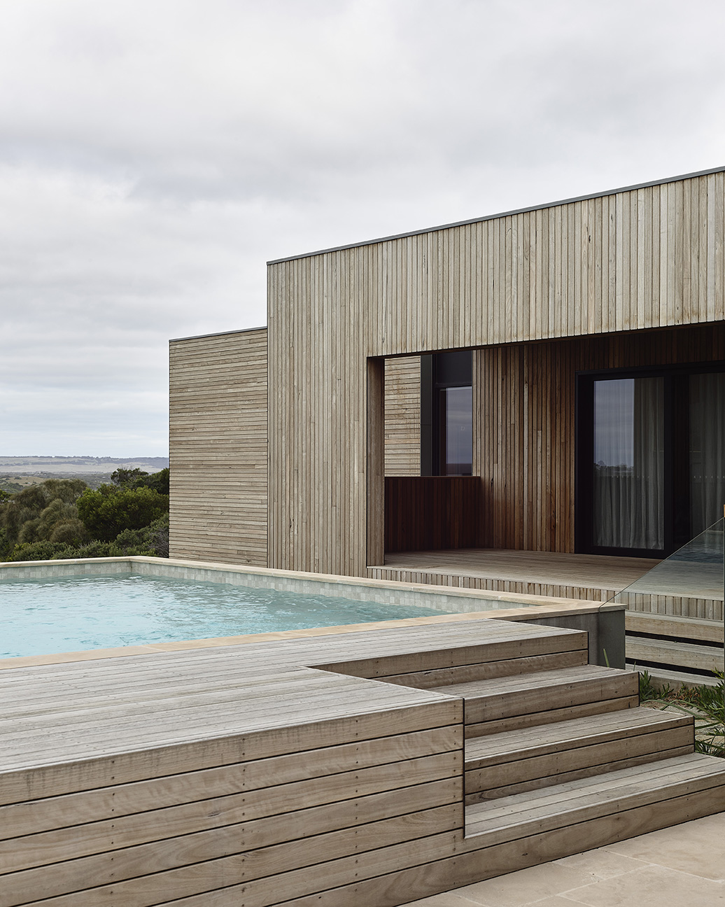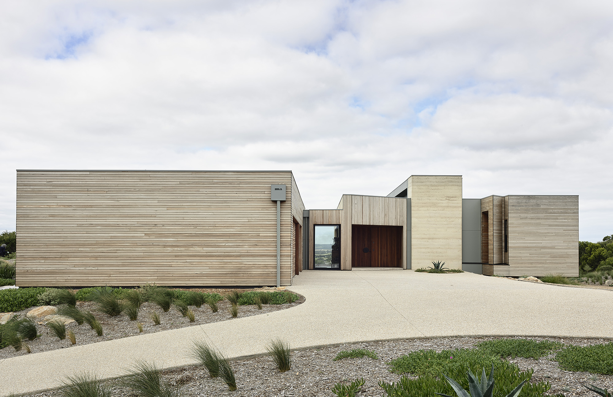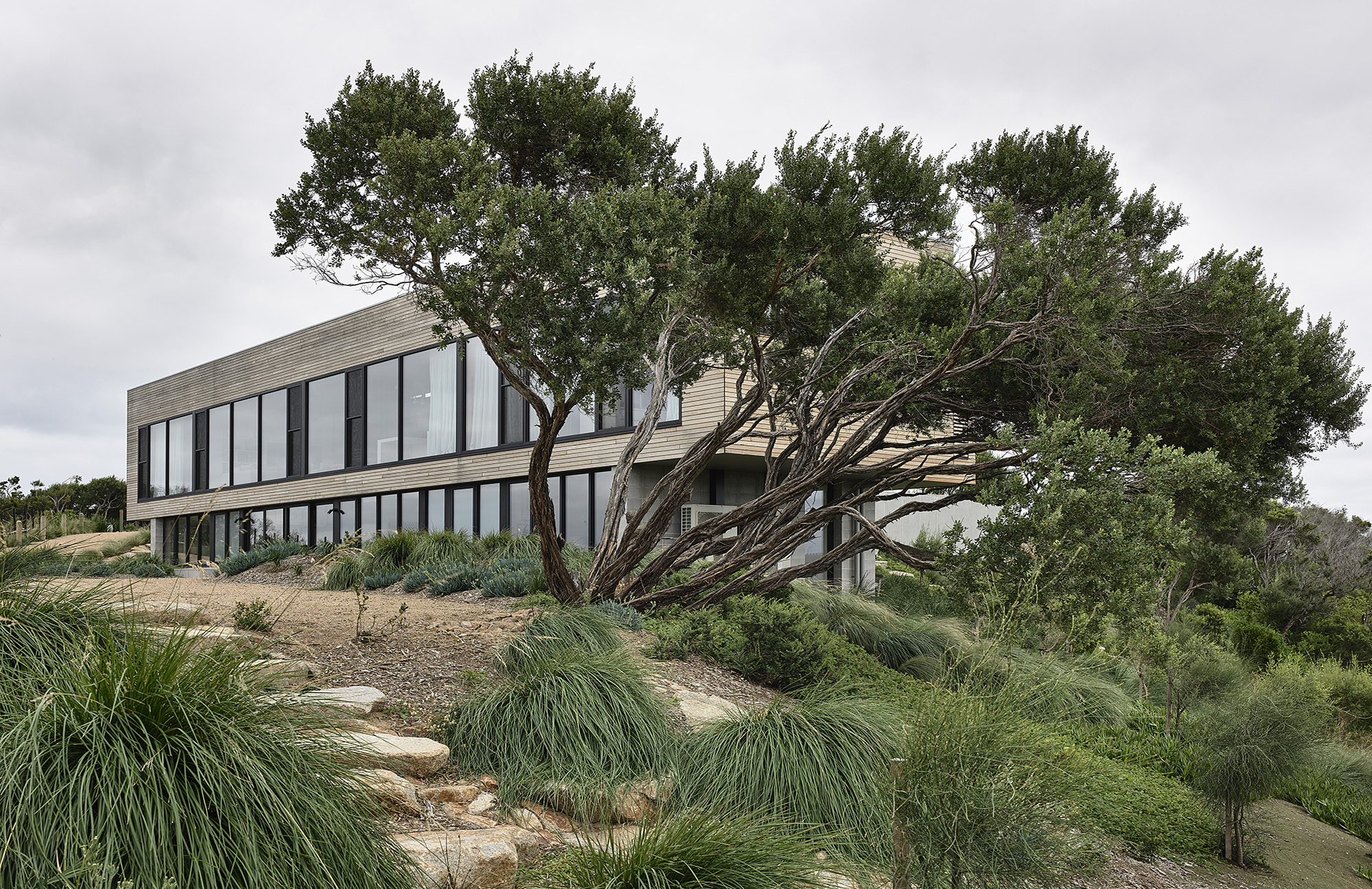 A rugged coastal site, the sound of roaring waves and that unmistakable smell of saline air. We imagined a home as an uncluttered set of volumes placed atop a dune crest. Thanks to the client’s hands-on involvement with the landscape design, the home emerges from a scattering of native scrub. With a split-level layout, the form responds to the topography and is clad in bushfire resilient Blackbutt timber. Overcoming the dilemma of a south facing sea view, solar passive design was iteratively tested to maximised northern solar access whilst optimising the very reason the clients picked this incredible site.