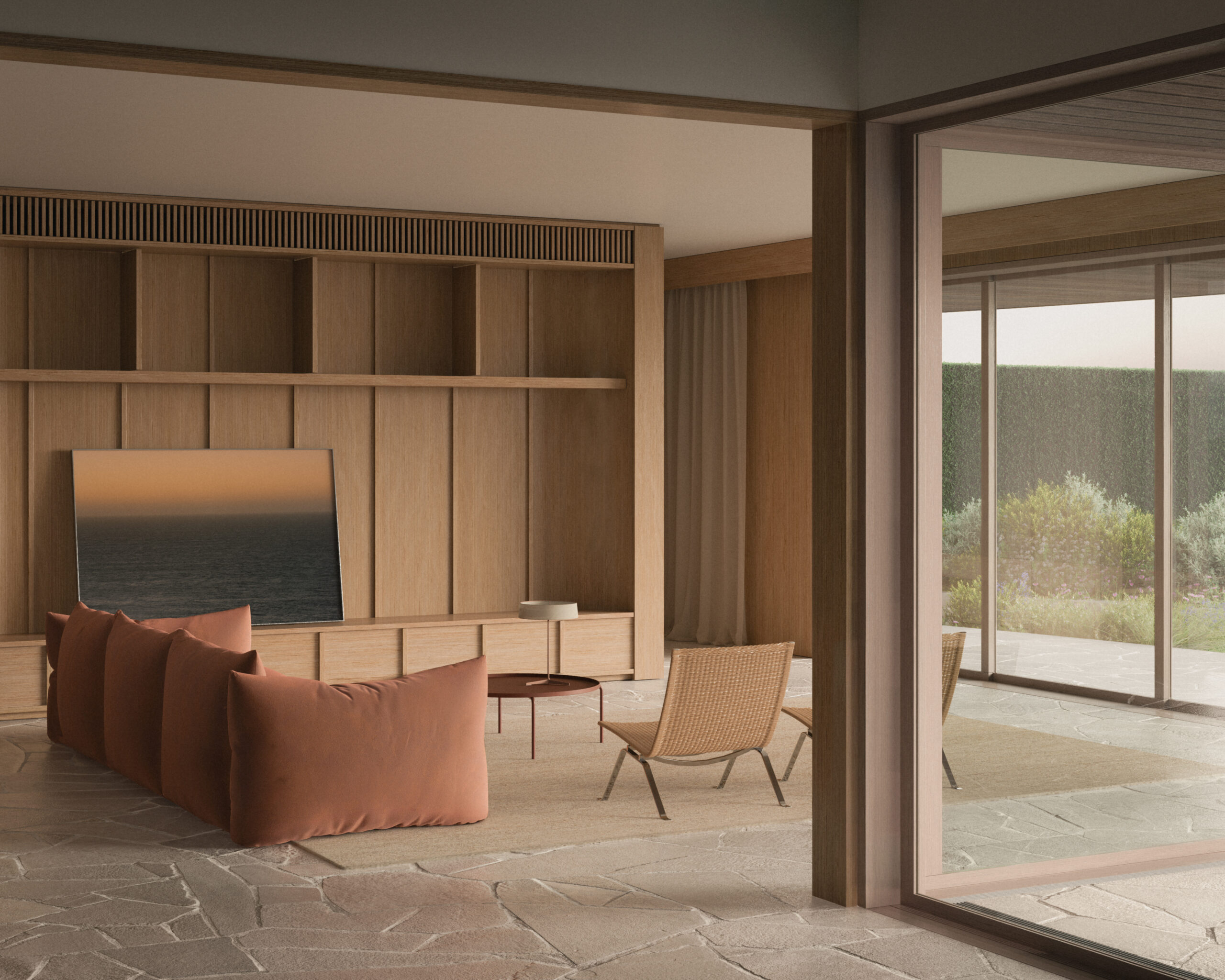 Guided by careful site analysis, subtle adjustments to the ground plane allow for expansive views across Port Phillip Bay while maintaining a sense of privacy.